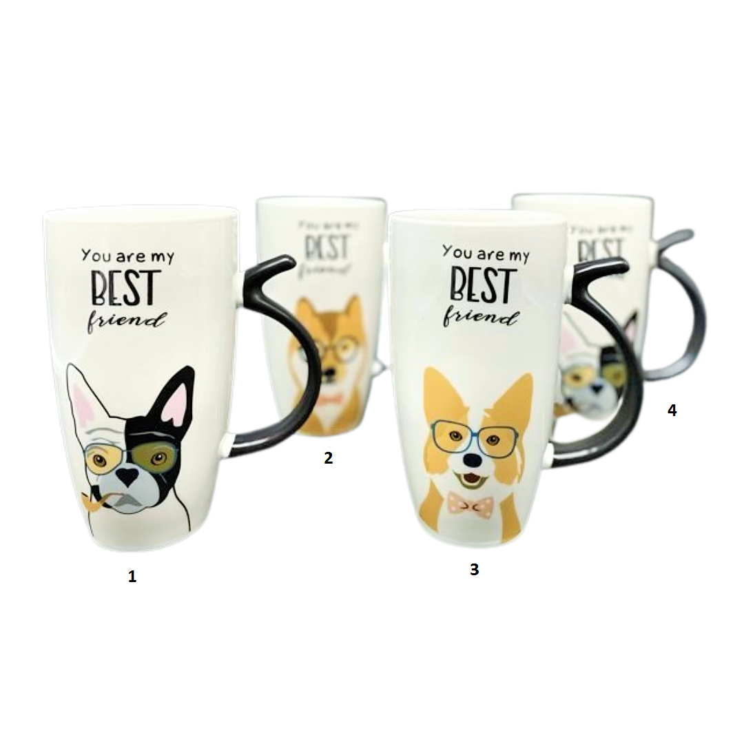 Κεραμική κούπα με καπάκι και σχέδια σκυλάκια.